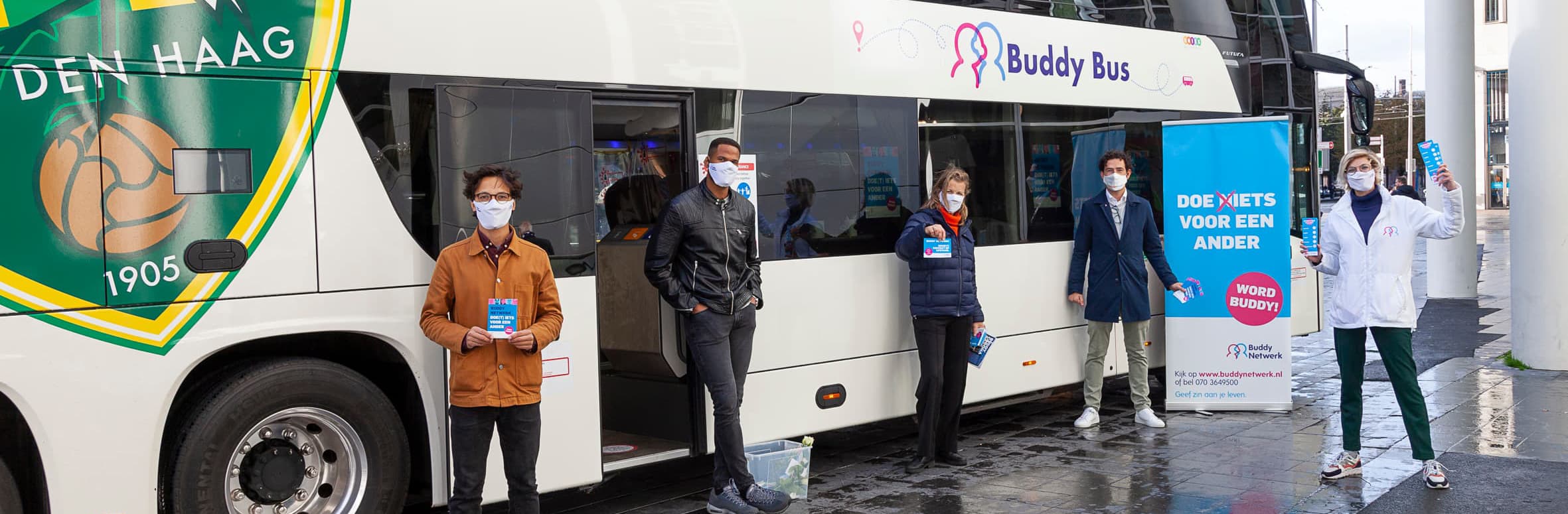 Samen met Buddy Netwerk hebben we de ADO Den Haag spelersbus omgetoverd naar de Buddy Bus. Met de bus zijn we door Scheveningen en Den Haag gereden om aandacht te vragen voor het thema eenzaamheid wat in deze tijd nog meer speelt dan normaal. We zijn samen met Buddy Netwerk de straat opgegaan om het gesprek te voeren over dit onderwerp en om buddy’s te werven voor de cliënten van Buddy Netwerk. Kijk voor meer informatie over Buddy Netwerk op hun website.